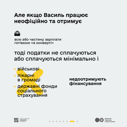 Знайомтесь: 48-річний Василь – архітектор в будівельній компанії. Він працевлаштований офіційно й отримує повністю «білу» зарплату. Які податки він сплачує? Куди саме надходять його кошти? На що держава та громади їх використовують і хто втрачає, якщо податки не сплачені?