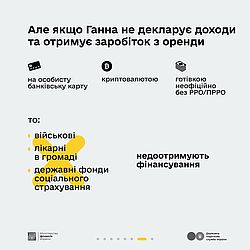 40-річна Ганна має кілька однокімнатних квартир і здає їх в оренду. Які податки вона сплачує? Куди саме надходять її кошти? На що держава та громади їх використовують і хто втрачає, якщо податки не сплачені?